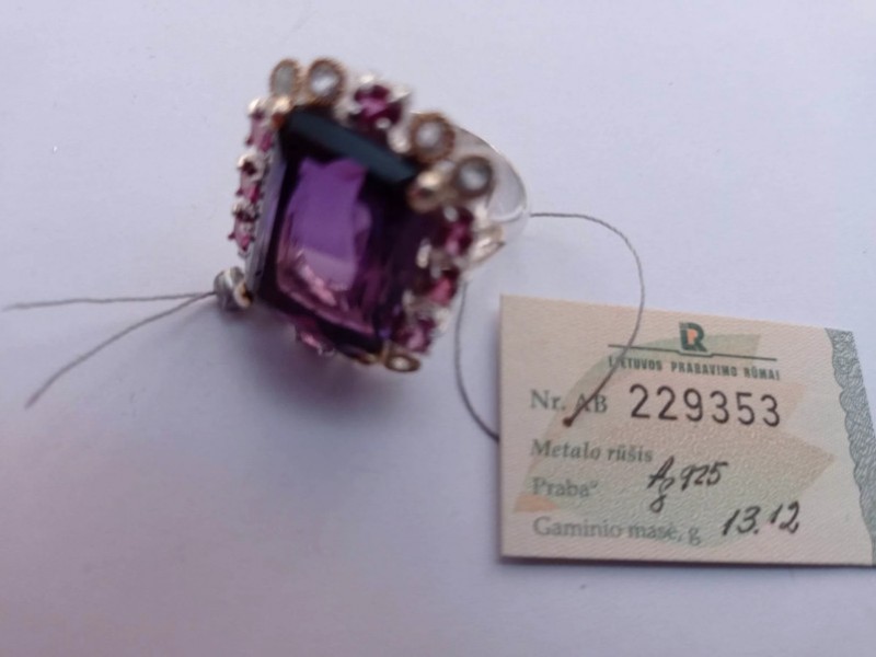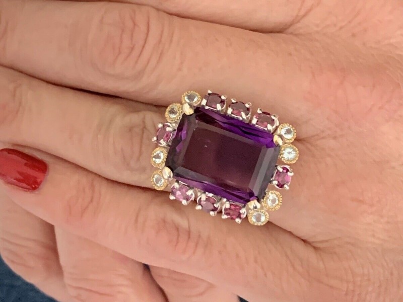 Naujas ispudingas labai grazus dizainerio sidabrinis ziedas su didziuliu ametistu 16.80 ct centre ir topazais ir rodolitais 1.6 ct!