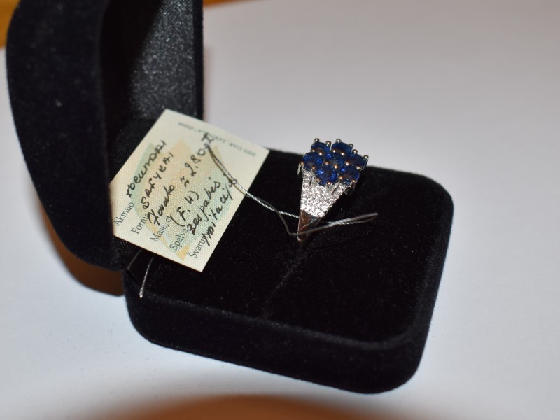 Naujas sunkus dizainerio ziedas su safyrais (brangakmeniai).