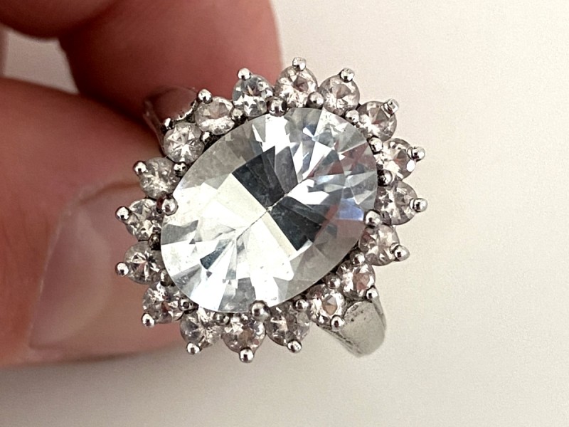 Naujas sunkus sidabrinis ziedas su dideliu topazu ir akvamarinais
