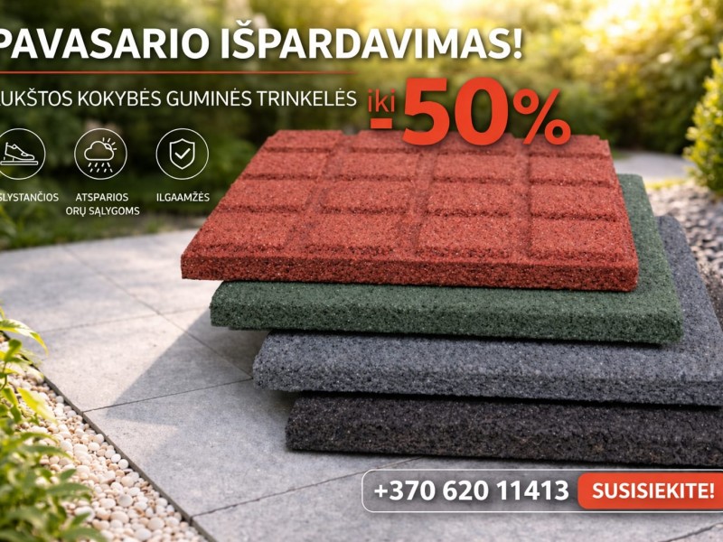 Iki -50% nuolaida guminėms plytelėms!