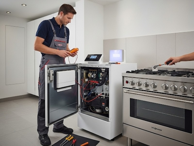 Dujinių prietaisų pajungimas, remontas ir įvedimas: dujinių viryklių, orkaičių, kaitlenčių montavimas.